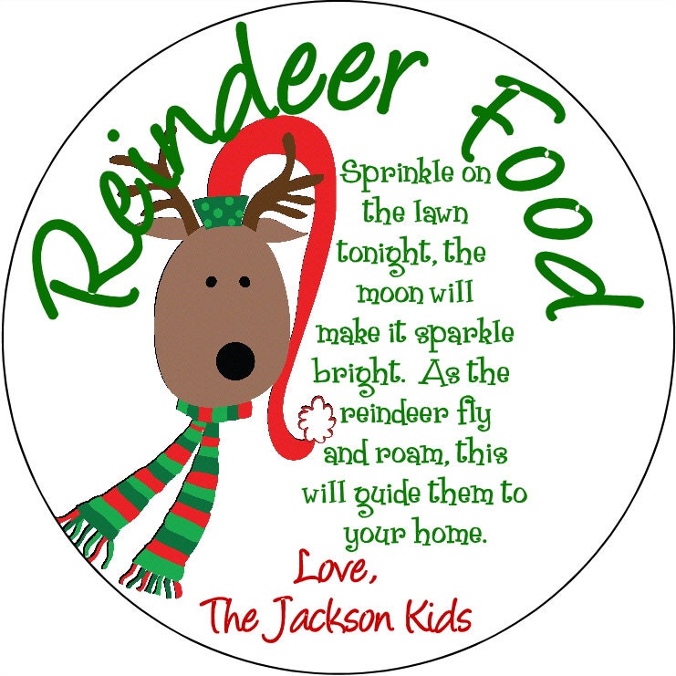 Amazon.com: reindeer food labels Magic Reindeer Food Holiday Christmas Thank You Sticker Labels, 40 2" Party Circle Stickers by AmandaCreation, Great for Gifts & Goodie Bags 28 $12 99 Get it Wed, Dec 29 - Tue, Jan 4 $4.59 shipping Christmas Reindeer Food Bags, Kids Christmas Reindeer Favor Bags 8 $12 00 Get it Tue, Dec 28 - Thu, Dec 30 $2.00 shipping