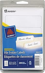 Avery File Folder Labels, 3-1/2" x 1-1/8", White, Rectangle, 200 Labels, Permanent (5217 ...