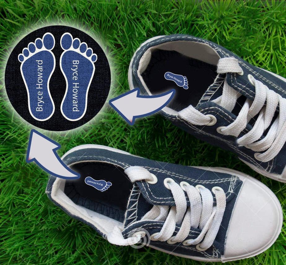 Shoe Name Labels | Name Labels for Shoes | IdentaMe Labels 20 labels $10.99. GET STARTED. Our cutest stick on name labels for shoes. Our shoe name labels are backed with a wicked sticky adhesive so you can stick these to all your family's footwear and anything with a hard surface. 20 labels for $9.99 USD. Stick on insole of shoes. Laundry Safe.